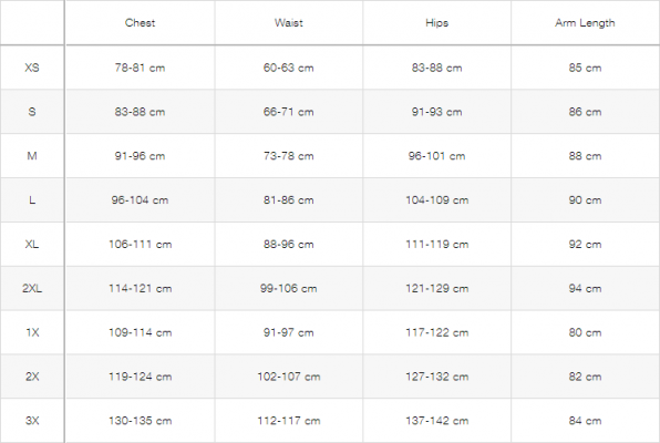 SIZECHEST/inchWAIST/inchHIPS/inchCHEST/cmWAIST/cmHIPS/cm